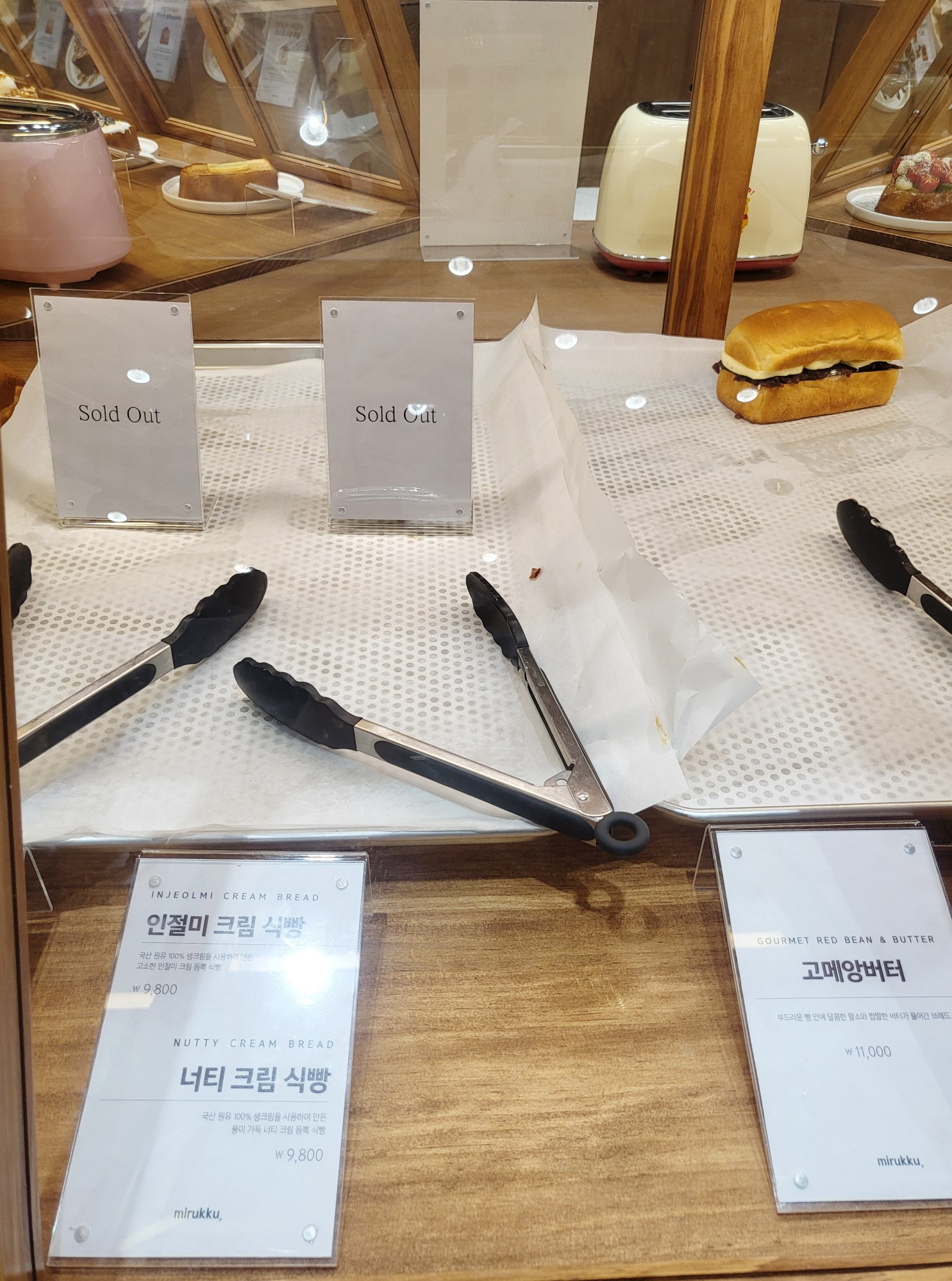 미루꾸 커피는 빵과 토스트 브런치도 유명하다고 해요. 저는 밥을 먹은 후 방문해서 작은 초코 식빵만 사먹었지만, 다음에는 밥을 따로 먹지 않고 와서 제대로 즐겨봐야겠다는 생각이 들었어요. 제가 방문한 건 늦은 오후였는데, 인기 있는 빵들은 이미 솔드아웃된 상태. 아쉬움이 남았지만 그만큼 많은 사람들이 찾는 곳이라는 게 느껴졌어요.